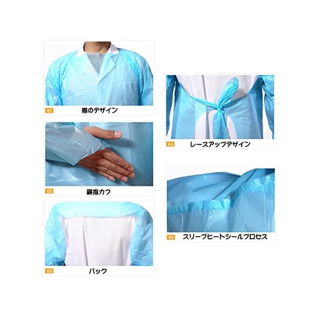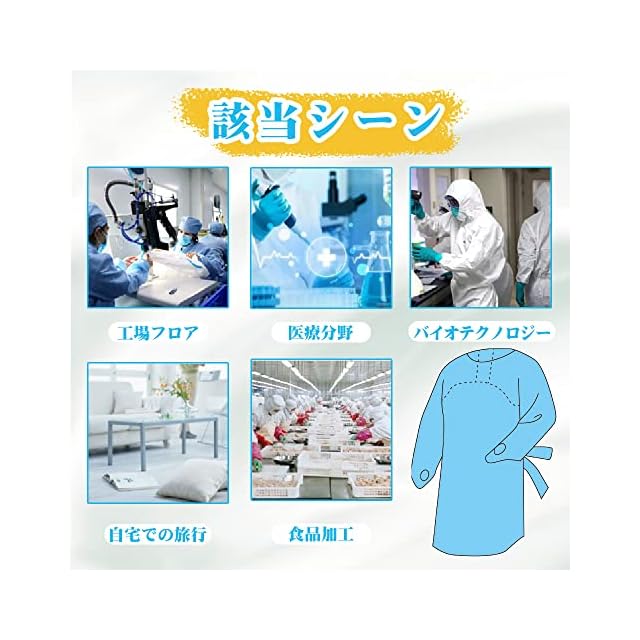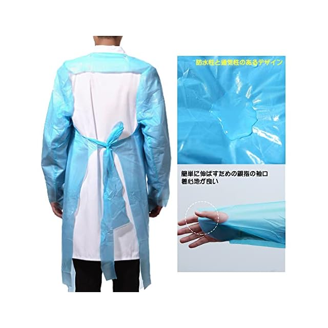 【使用上の注意点】防護服は使い捨てタイプの商品ですので再利用はしないでください。防護服が破損や破れが生じた場合はすぐに交換をしてください。防護服が直射日光に当たらないように保管して下さい。※当店の袖付きエプロンは防水ものになります。