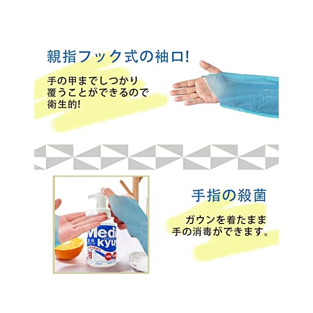 【袖付きエプロンの商品詳細】タイプ:使い捨て不織布サージカルエプロン、入数:20着 色:ブルー、サイズ:フリーサイズ(男女兼用)