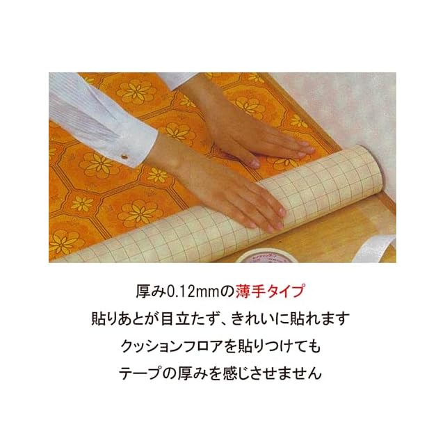 薄手タイプで貼りあとが目立たず、きれいに貼れるクッションフロア用両面テープです。