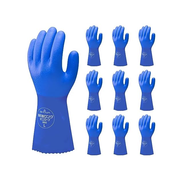 [ショーワグローブ] ケース販売・60双・耐油手袋 簡易包装 耐油ロングビニローブ Lサイズ 10双入 6袋