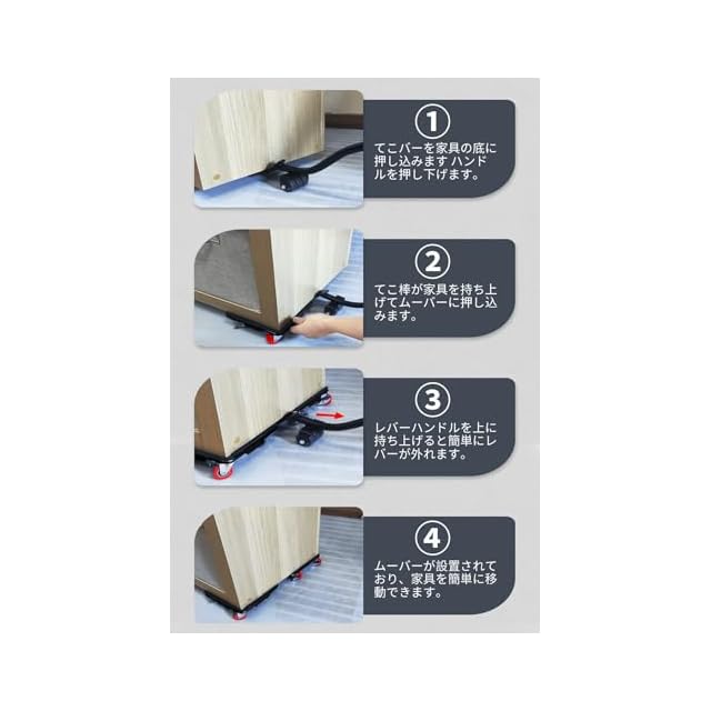【応用は広範です】:家具移動グッズ, 家具の昇降器とカートは硬い木の床、複合床に適して、例えば戸棚、引き出し戸棚、箱、家具、電気、机、ベッド、ソファーなどの重いものを移動して昇格させます。それはあなたの家をきれいにするのにいい手伝いになります