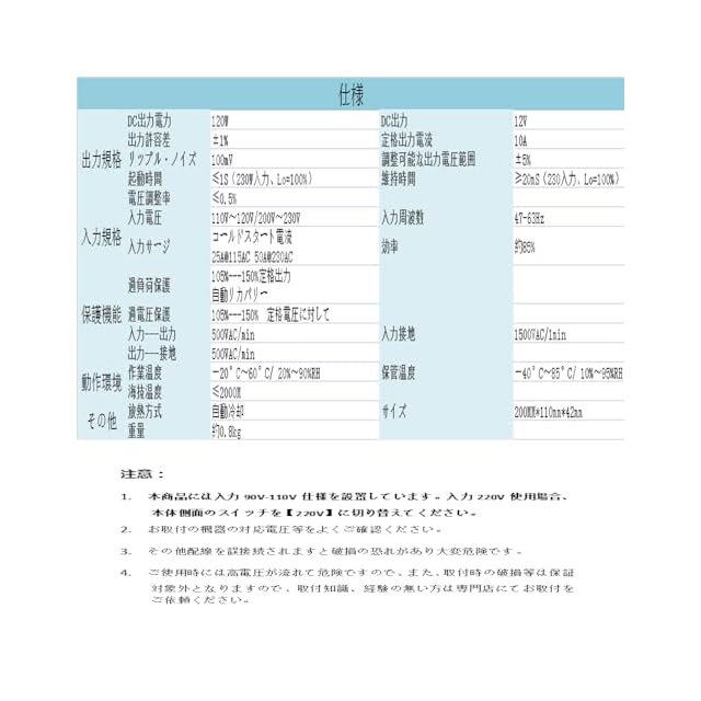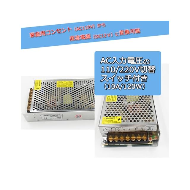 【AC電源からDC電源に変換】家庭用コンセント(AC 100V~220V)から直流電源(DC12V)に変換でき、 10A 120Wに変換するAC/DCコンバーターです。