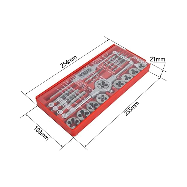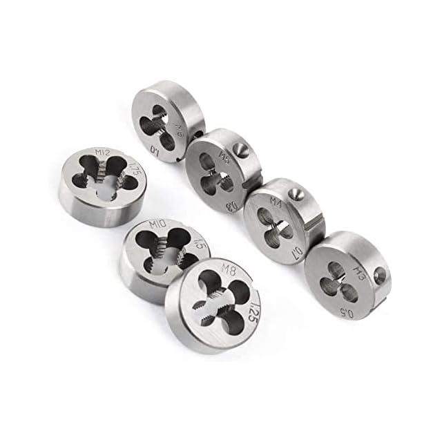 ダイス:M3×0.5、M4×0.7、M5×0.8、M6×1.0、M7×1.0、M8×1.25、M9×1.25、M10×1.5、M12×1.75mm