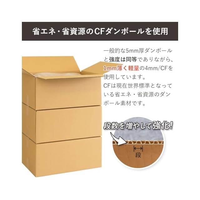 「ボックスバンク」ブランド商品。品質向上・省資源・保管・積載効率向上のため、世界品質のエコロジー素材「Cフルート 」採用!