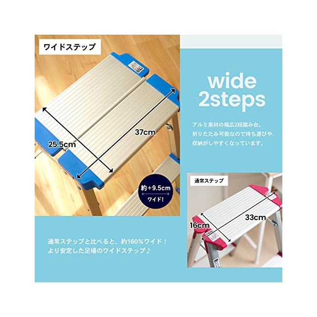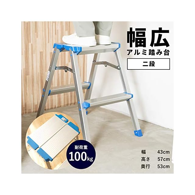 コーナンオリジナル アルミ 踏み台 2段 幅広天板 高さ57cm 折りたたみ 滑り止め 軽量 耐荷重100kg