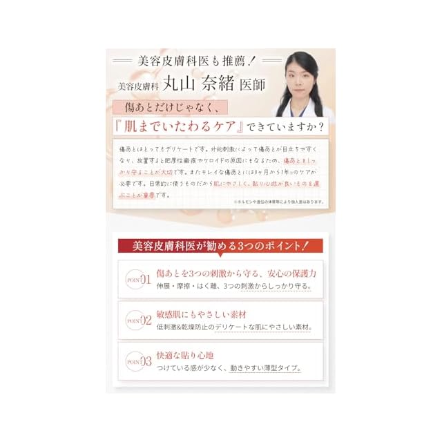 ✅【あなたの肌に寄り添う、やさしいケア】傷あとは外的刺激によって目立ちやすくなり、放置すると肥厚性瘢痕やケロイドの原因になることもあります。当社品は、皮膚科医監修のもと、傷あとを外部刺激から守り、やさしいケアで美しい仕上がりをサポートします。※治癒・止血などの機能を持たず、あくまで外部刺激から保護することを目的としています。