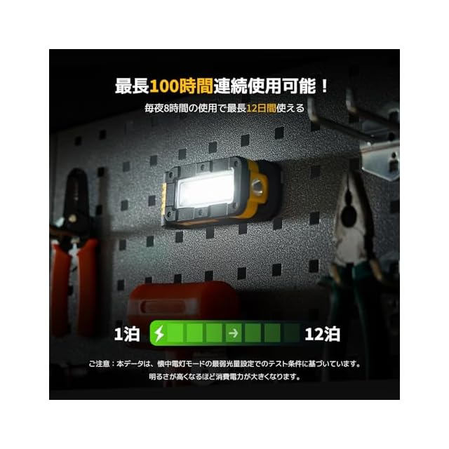 最長35時間連続使用可能:一度の充電で最大35時間使用可能。長時間の作業やアウトドアでも安心して使える、効率的で経済的な作業灯です。