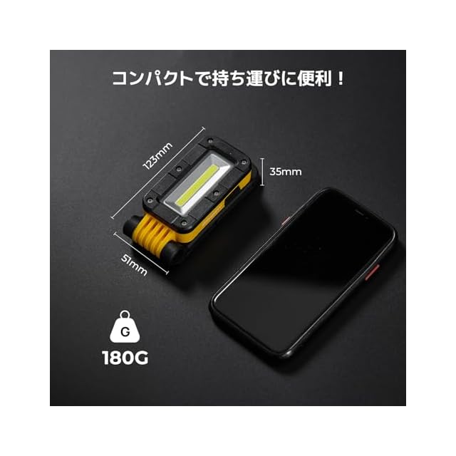 ポケットに収まる超コンパクトな作業灯: スリムで軽量なデザインにより、持ち運びが簡単。狭いスペースでも活躍し、日常からプロの現場まで幅広く対応します。
