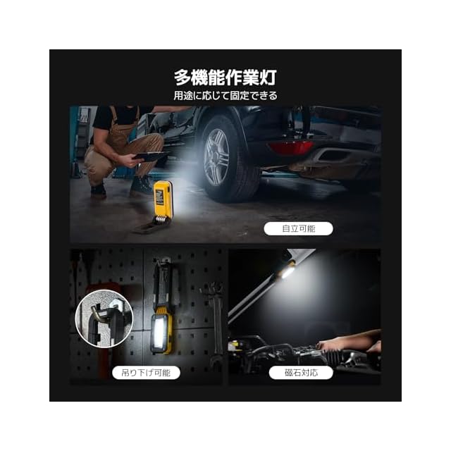 6.どこでも使える!多機能作業灯: 自立可能、吊り下げ可能、磁石対応で、あらゆる作業シーンに対応。自由自在に固定して、効率的な作業をサポートします!