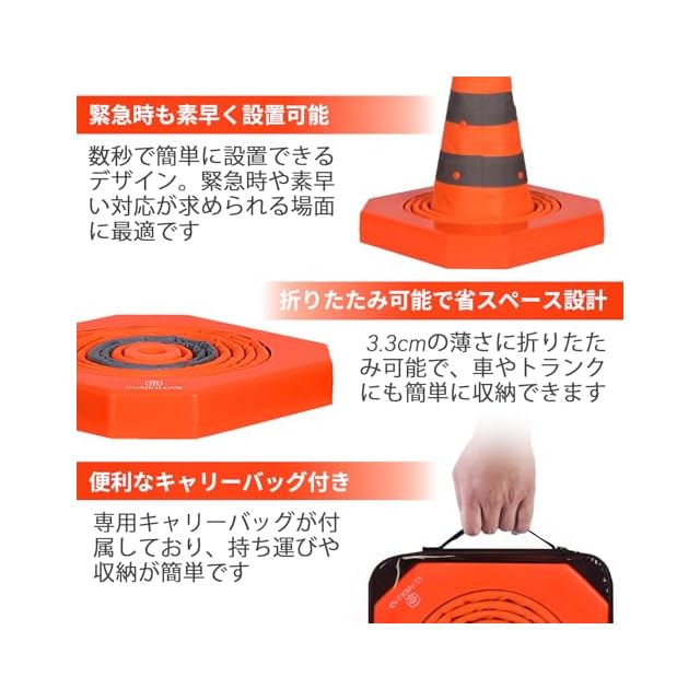 【多用途×耐久性|屋外使用も安心】LZ02 Pro折り畳みカラーコーンは、衝撃や風雨に強いABS素材としっかりした構造で、屋外や不安定な地面でも安定して設置可能。緊急時の表示、工事現場、駐車場、学校イベント、スポーツ、キャンプなどさまざまなシーンで活躍します。車載から防災備品まで、幅広く頼れるアイテムです。