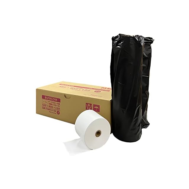 ビジコムの純正品。原紙・加工ともすべて日本製の高品質商品。レジスタ・レシートプリンタの汎用ロール紙として安心してお使いください。