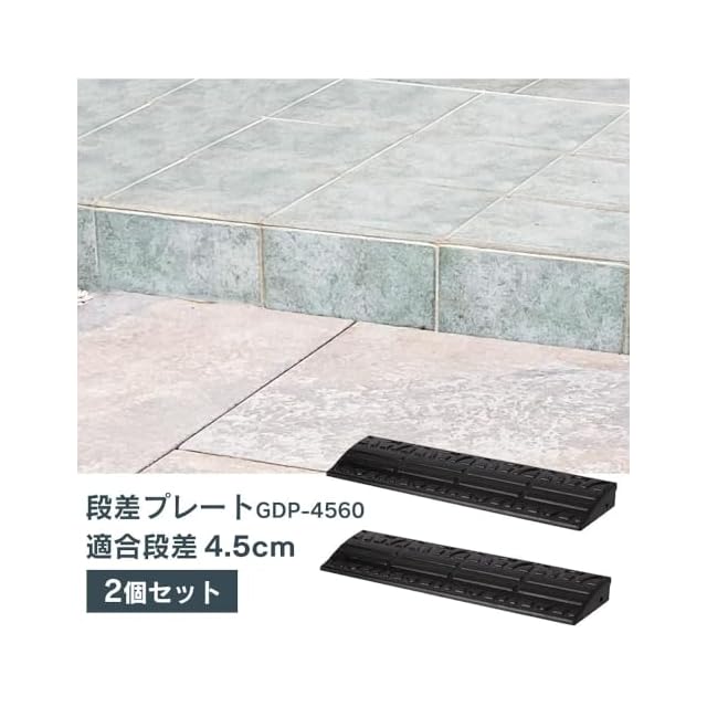 【2個セット】アイリスオーヤマ 段差 スロープ プレート 幅 60cm段差 5cm GDP-4560 ゴム製 ブラック
