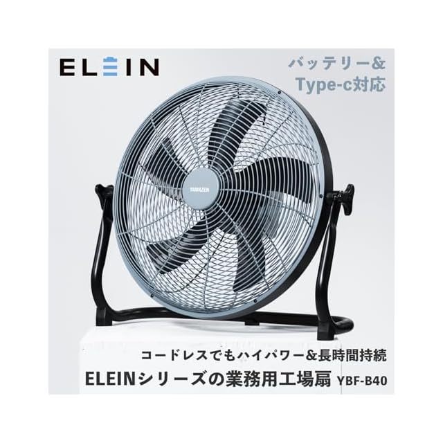 山善 ELEIN 業務用扇風機 扇風機 工場扇 2WAY電源 (USB Type-C/バッテリー) 44時間連続運転 風量調整無段階 羽根径40cm 上下角度調節 アウトドア パワフル送風 ブルーグレー YBF-B40 | つむぎ屋