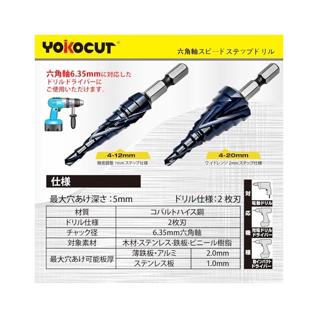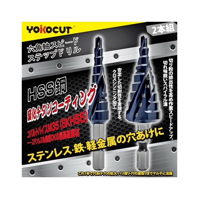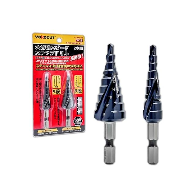 ステップドリル たけのこドリル タケノコドリル チタンコーティング 段付きドリル テーパシャンクドリル (2個セット 4-12mm9段+4-20mm9段)