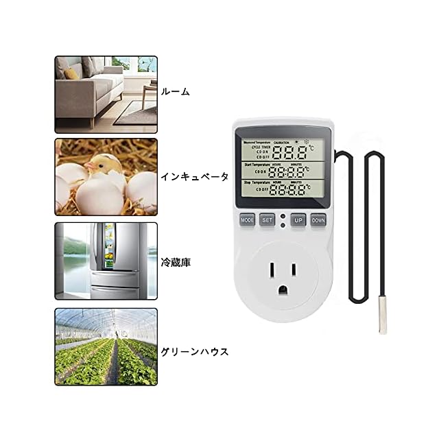 【温度制御モード】サーモスタットの開始温度と停止温度を設定して、暖房または冷房設備を制御します。温度コントローラーの入力は120VAC 50 / 60Hz、出力は15A 1800Wで、ほとんどの家電製品に適しています。