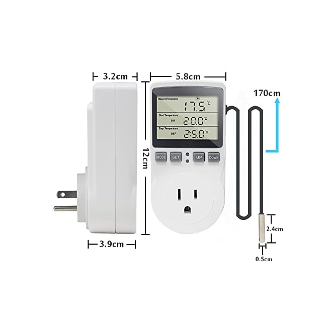 KT3100 デジタル プログラミング サーモスタット サーモスタット スイッチ ソケット コンセント 醸造 発酵 水族館 爬虫類 温室 保育園 発芽 加熱 冷却モード 15A 1800W 3m センサー プローブ 100V | つむぎ屋