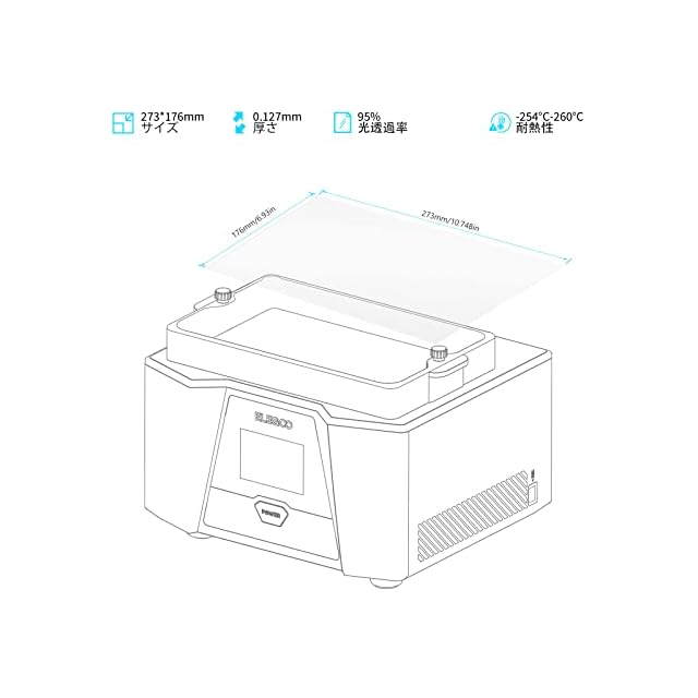95%の紫外線透過率は、より速く、より正確な硬化3Dプリントモデルのために通過する紫外線の適切な量を確保し、ぴったりとフィットし、傷がなく、より少ないリリーステンションでモデルを簡単に取り外すことができます。