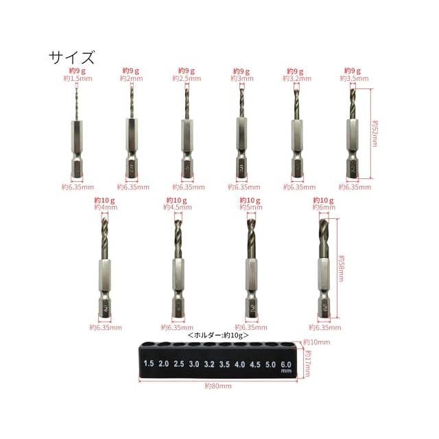 セット内容:1.5/2.0/2.5/3.0/3.2/3.5/4.0/4.5/5.0/6.0mm(クロスシンニング加工を施したドリルは3.0mm以上です。)