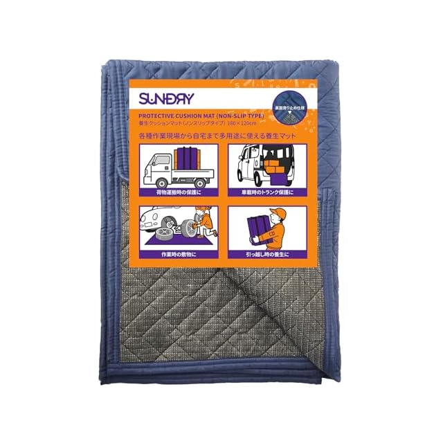 荷物運送時の保護や車載時のトランク保護、作業時の敷物、引っ越し時の養生など多用途に使えるマット