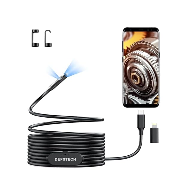 【360万画素&デュアルレンズ】 ファイバースコープ 2560P DEPSTECH 2025年新型 2K画質 防水内視鏡カメラ 7.9MMスコープ USB Type-C lightning接続 Android iPhone 対応 専用アプリ付 高輝度LED搭載 家庭用 機械点検 自由研究 5M半剛性ケーブル 24ケ月付 | つむぎ屋
