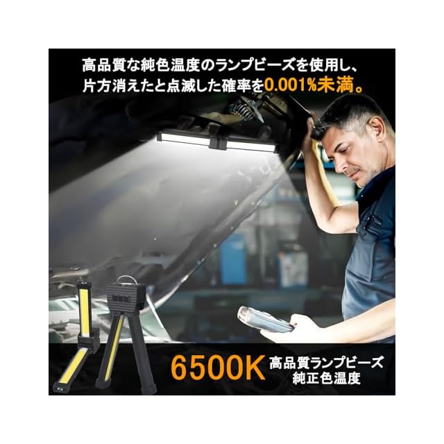 【プロフェッショナル作業から防災まで】LED COBワークライト 12モード 超軽量折り畳み式 あらゆるシーンを照らす多機能照明の決定版!自動車整備・DIY作業からキャンプ、非常時まで、高輝度LEDが暗闇をパワフルに変えます。