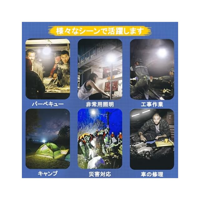 ✅【多場所適用・2年】アウトドア、夜間作業、車の修理、停電対策、災害対策、緊急時などに必要な屋外照明に適している。本製品は高品質で2年間。弊店は「品質第一、お客様第一」を一貫してお客様に良い商品を提供するのを目指しています。万が一何か問題や初期不良などがございましたら、ごひょうかー前にお気軽にご連絡お願いいたします。24時間以内に問題を解決する為に最善を尽くすことをお約束致します。弊社は、お客様のさらなる満足度向上の努力してまいります。