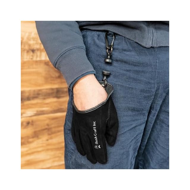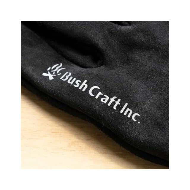 [ブッシュクラフト] レザーグローブ クイック焚き火グローブ ブラック サイズ(mm):本体全長約208 カラビナ&マグネット部長さ約120 手のひら周り約265 中指長さ約95 重量:約200g / 双 | つむぎ屋