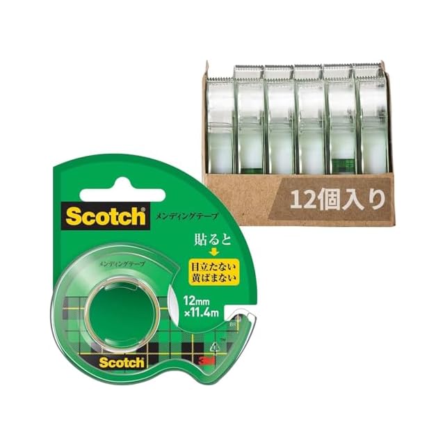 商品名:3M スコッチ テープ メンディングテープ ディスペンサー付 12mm×11.4m 小巻 12巻 CM-12
