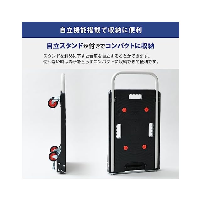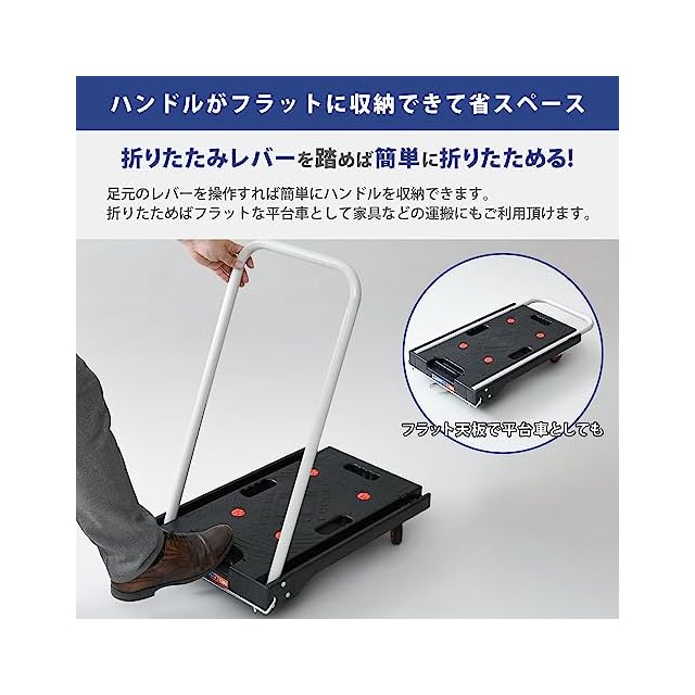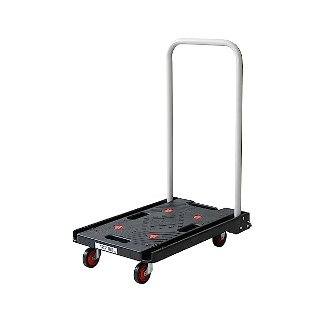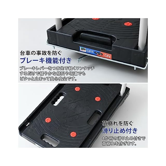 山善(YAMAZEN) 台車 静音キャスター 38×62cm 積載荷重100kg すべり防止ゴム(4カ所) ブレーキ付き 折りたたみ 軽量 コンパクト YSF-6040B(BK) ブラック | つむぎ屋