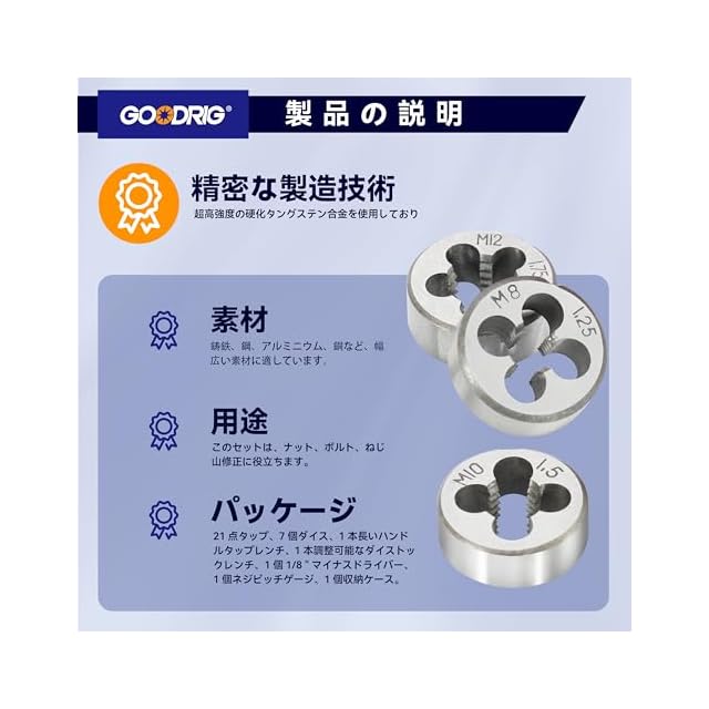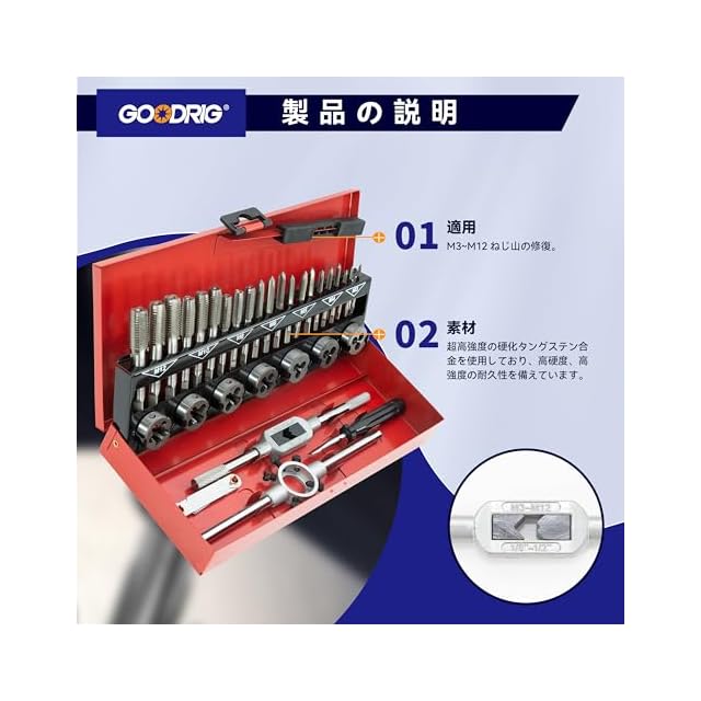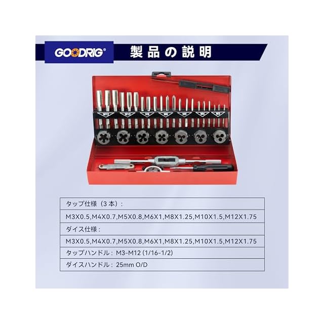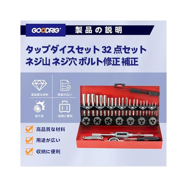 商品名:GOODRIG タップダイスセット 32点セット ネジ山 ネジ穴 ボルト修正 補正