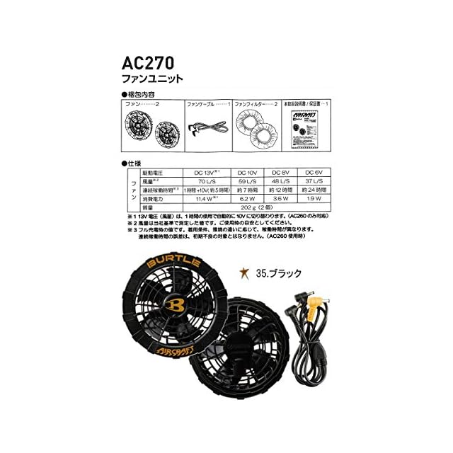 商品名:バートル ファンユニット エアークラフト 京セラ製 AC270 35.ブラック ※19V 22Vと互換性なし