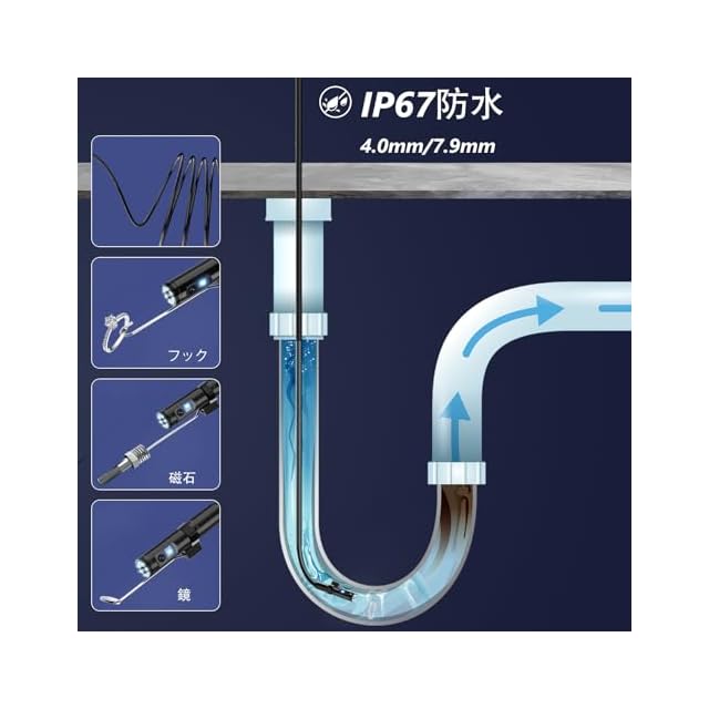 【半剛性&IP67防水】下水道カメラには5メートルの半剛性ケーブルが装備されており、操作中にさらに便利に制御でき、スネークカメラは剛性と柔軟性のバランスを実現しています。下水道カメラはIP67の防水等級を備えており、水中カメラ、防水望遠鏡カメラ、車両探知機、下水道探知機などとして使用できます。