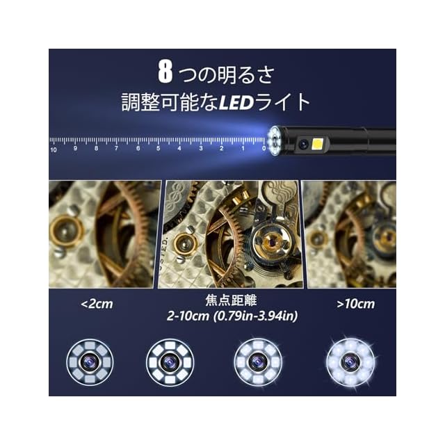 【1920P HD高画質】ライト付きデュアルヘッド内視鏡カメラは1920P HDピクセルを備え、鮮明な画像と動画を表示します。 8+1 個の調整可能な LED カメラにより、暗い環境でも鮮明な画像が確保されます。マイクロスコープには、コンパクトで持ち運びに便利な 7.9 mm カメラが装備されています。