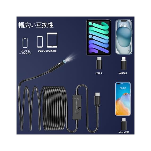 【幅広い互換性】ファイバースコープにはiPhone/Micro USBアダプターが付属しています。内視鏡は、OTG 機能を備えた Android デバイスと互換性があります (重要: 購入する前に、Android フォンが OTG 機能をサポートしていることを確認してください)。 iPhone を使用するときは、接続するだけで準備完了です