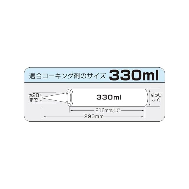 適合コーキング剤サイズ:筒長さ216mmまで / φ50まで / 容量330ml