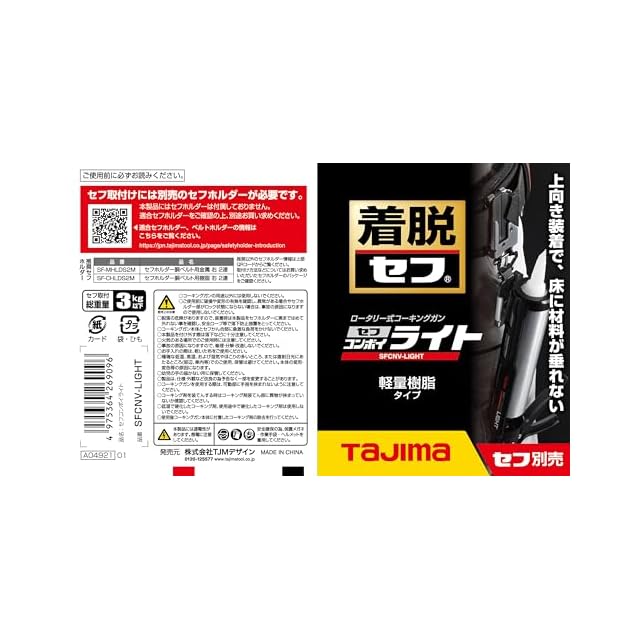 タジマ セフシステム ホルダー式コーキングガン セフコンボイライト SFCNV-LIGHT セフフック付で腰周りに装着可能 上向き装着で材料が垂れない ノズルカット面を自在に操るロータリー式ハンドル 押出し力と耐久性がアップ 液だれ防止機構を搭載 | つむぎ屋