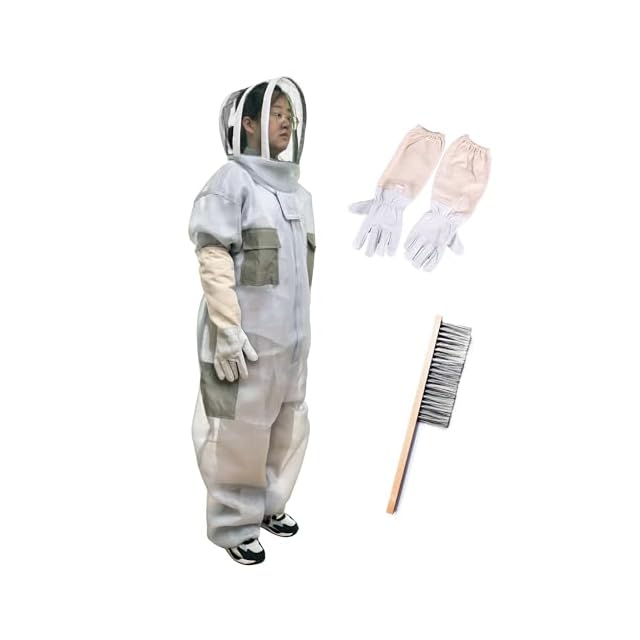 [ShiawaseforU] ハチ防護服 スズメバチ 駆除防護服 養蜂 蜂 害虫駆除 ブラシ手袋付き フェイスネット 取り外しやすい 3層通気 一体式 三点セット