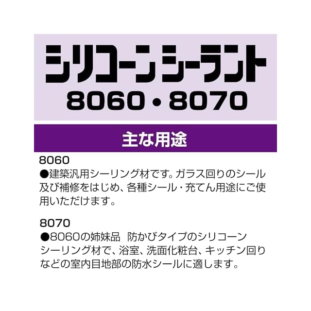 浴室・洗面台・台所回りなどのカビの生えやすい箇所のシールに適している