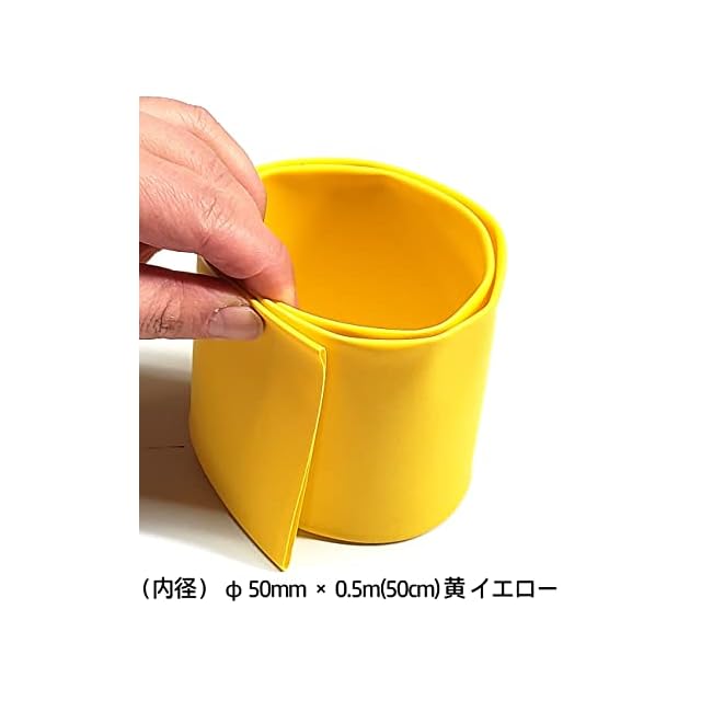 商品名:熱収縮チューブ φ 50mm 絶縁チューブ 収縮比率約 2 : 1( 50ミリ → 25ミリ ) (内径) φ 50mm × 0.5m(50cm) 黄 イエロー