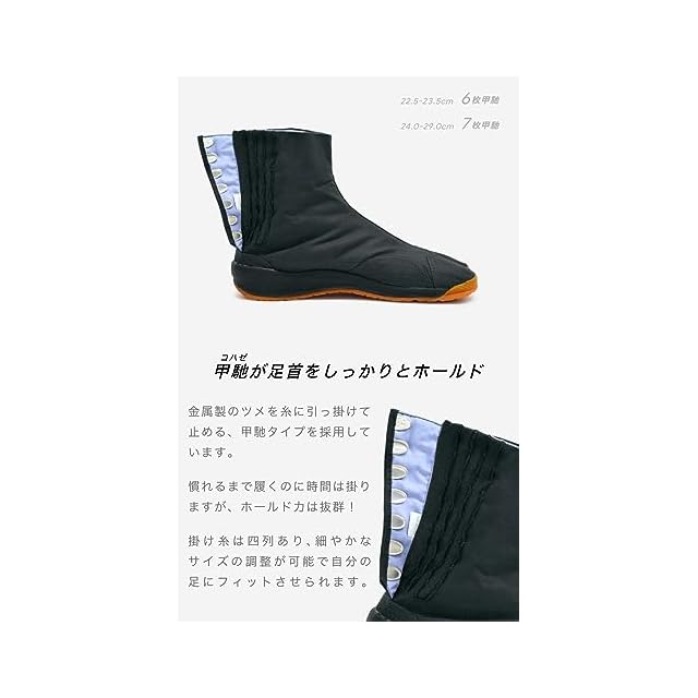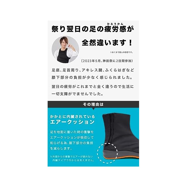 商品名:[あい藍] エアクッションが衝撃を吸収 コハゼ 地下足袋 祭りたび (22.5cm〜29.0cm) (日本の靴のサイズ寸法, 大人, 数値)ブラック25.0 cm
