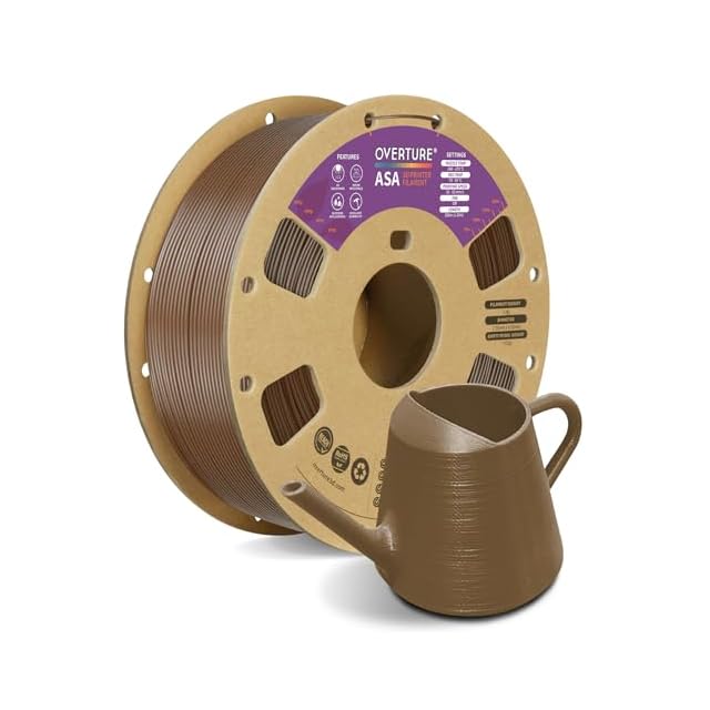 OVERTURE ASA フィラメント 3Dプリンター フィラメント 3D印刷フィラメント ASA 1.75mm 1kgスプール 寸法精度+/-0.03mm 高密度 環境保護 ほとんどのFDMプリンターに適合 (ブラウン) | つむぎ屋