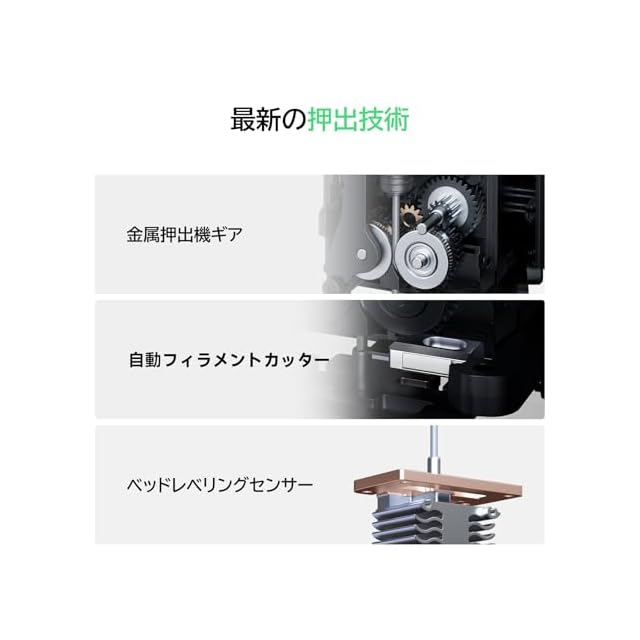 耐久性と洗練されたデザイン: アルミダイキャスト合金製の堅牢なオールメタルボディのCreality Hiは、X軸に精密リニアレール、Y軸にデュアルロッドを採用し、安定性とモダンな美しさを兼ね備えています。