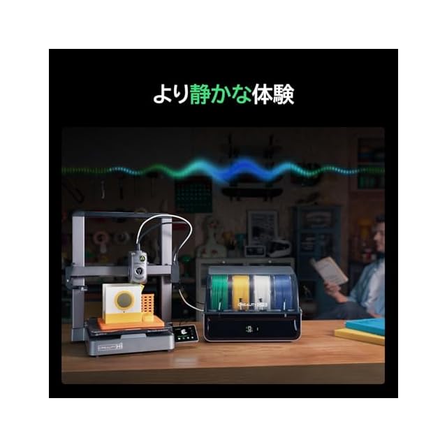 商品名:Creality Hi(A) 3Dプリンター、マルチカラー3Dプリンター 最大印刷速度500mm/s 高速 高精度 自動レベリング 300℃高温印刷 アンチクログホットエンド 静音造形(<48dB) 家庭用 日本語UI対応 造形サイズ260x260x300mm CFS別売り