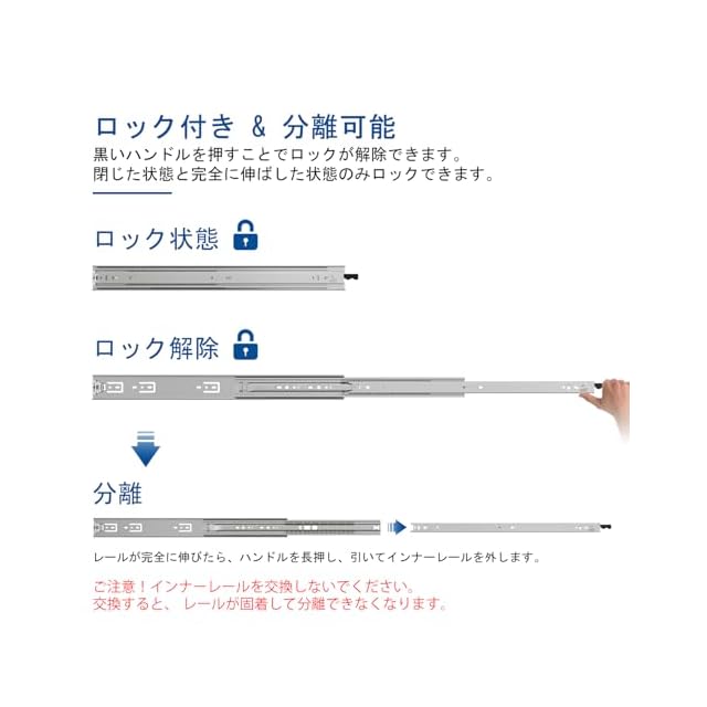 商品名:VADANIA 400mm 重量用スライドレール ロック付き #VD1551 Heavy Duty引き出しスライド 3段引 フルエクステンション ボールベアリング 左右1セット