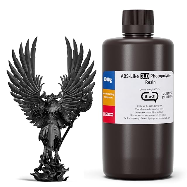 ELEGOO ABSライク3Dプリンター用レジン3.0 ブラック 強化された強度と靭性 高精度 低粘度 LCD/DLP 3Dプリント用405nm UV硬化型フォトポリマー樹脂 LCD 1000g | つむぎ屋