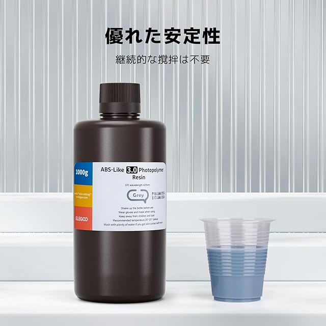 商品名:ELEGOO ABSライク3Dプリンター用レジン3.0 ブラック 強化された強度と靭性 高精度 低粘度 LCD/DLP 3Dプリント用405nm UV硬化型フォトポリマー樹脂 LCD 1000g