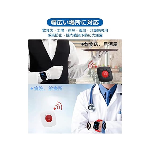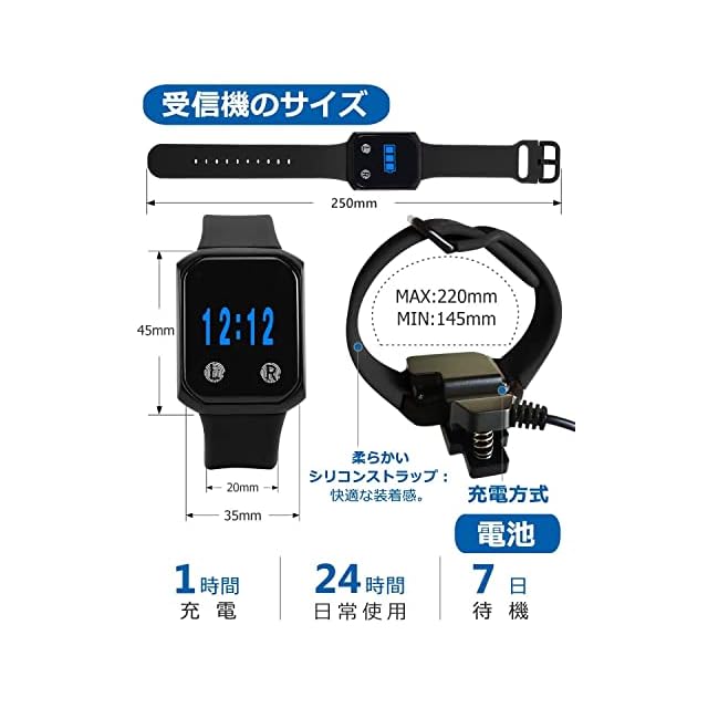 商品内容:1*腕の受信機+2*呼び出しベル