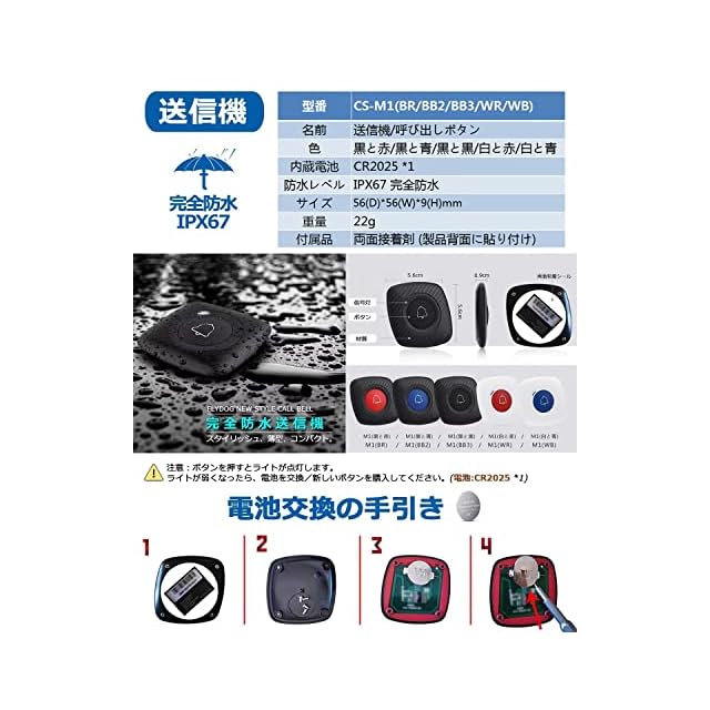 【安心】呼び出しベル ワイヤレス,お買い上げ日より、この商品には1年間のが付いておりますので、安心してお買い求めください。生涯の技術サポート。日本語説明書での配達。