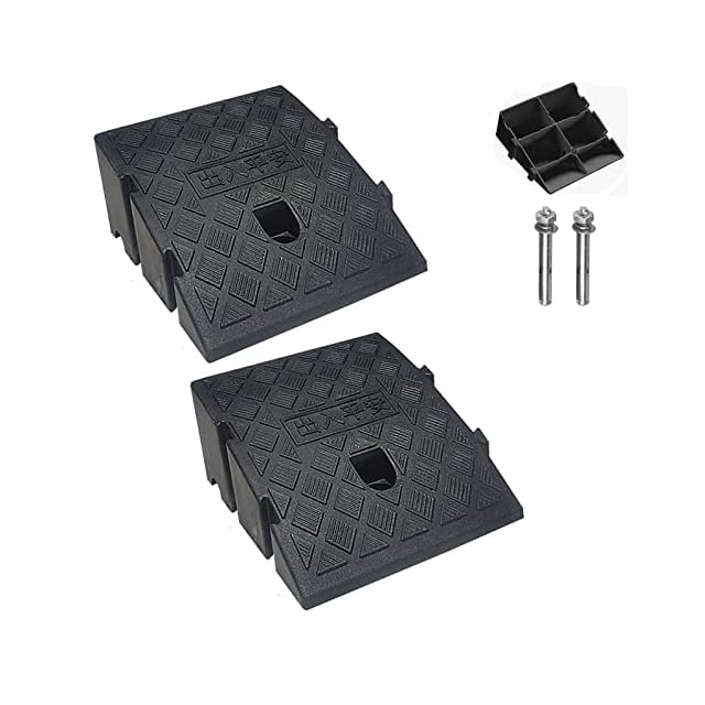 【商品サイズ】 2個 幅25cm×奥行き27cm×高さ11cm、一般的な自家用車対応します。段差スロープは、カー、自転車、バイクどちらでも使える強度を持っています。高輝度反射ストリップが付属しています(必要に応じて貼り付けるかどうかを選択できます)。