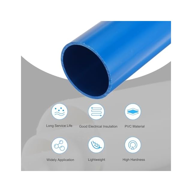 外径:57mm/2.24";内径:63 mm/2.48";長さ:30cm/12";カラー:ブルー;素材:PVC;パッケージに含まれるもの:1本 x PVCパイプ
